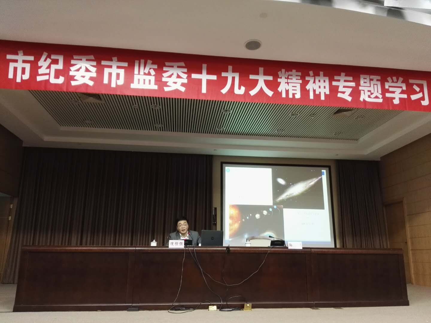 10月27日,市纪委市监委召开会议,专题学习传达党的十九大精神。成人网 院长沈佳强教授应邀在会上作学哲学用哲学的专题辅导报告。