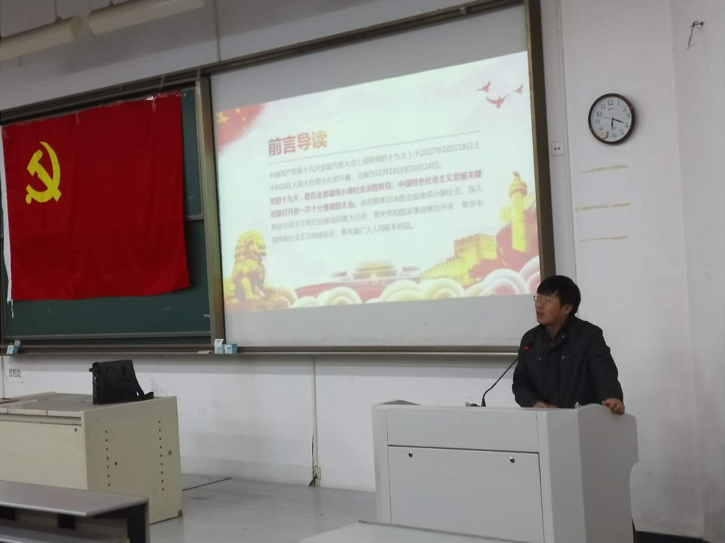 12月9日晚,校宣讲团成员、成人网 顾协国副教授代表成人网 教工第一、第二党支部在定海校区教学楼130教室面向结对的东海科技学院工程系学生第一、第二党支部120多名学生党员及入党积极分子开展了一场生动的“十九大”精神专题宣讲活动。