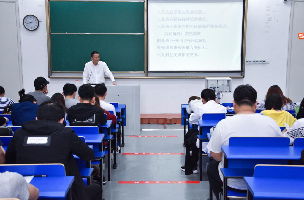 副校长徐汉祥以“我国渔业发展形势与渔业的绿色发展”为主题,为水产学院师生上了一堂生动的“形势与政策”课。