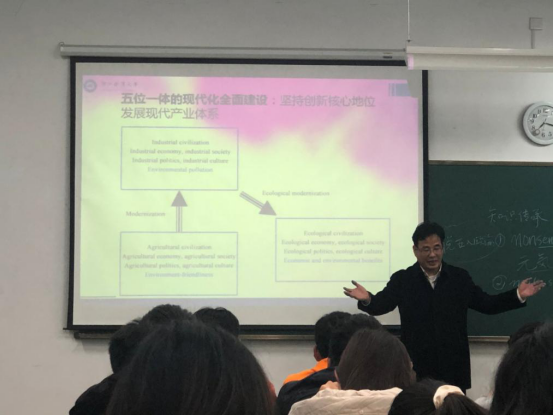 2个多小时的授课,严书记谈古论今,中西结合,不时与学生互动,课堂气氛轻松活跃。整堂课融思想性、理论性和趣味性于一体,极富亲和力和感染力,也充满着浓浓的爱国情怀和家国担当,受到了同学们的热烈欢迎。