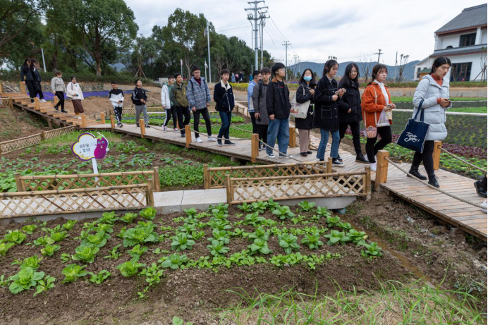 随后导游还先后带领同学们参观了“东海渔嫂”品牌、民生驿站、思源井、吊井、姓氏墙、庐下叙煨鸡馆、农耕文化墙、莲花映廉等。路下徐村在现代网络科技的启发下,打造了名为“开心农场”的休闲农业品牌,形式类似于“蚂蚁森林”式的租田种地,还加入了“QQ农场”式的偷菜娱乐项目,这种模式在休闲农业发展规划中极具指导及借鉴意义。