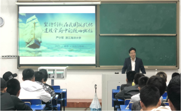 党委书记严小军以“坚持创新在我国现代化建设全局中的核心地位”为题,给船舶与海运学院的学生上了一堂深刻而生动的形势与政策课。