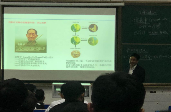 接着,严书记结合如何实现“碳达峰”和“碳中和”等案例从坚持四个面向的战略方向、强化国家战略科技力量、提升企业技术创新能力等方面详细介绍了我国关于实施创新战略的总体部署。期间,严书记深情地讲述了袁隆平一生致力于杂交水稻技术的研究、应用与推广的故事,指出正是因为袁老致力于杂交水稻育种科技创新,最终为中国粮食安全、农业科学发展和世界粮食供给作出了杰出的贡献。他号召青年学生要认真学习袁隆平精神,积极投身伟大时代,有所作为。
