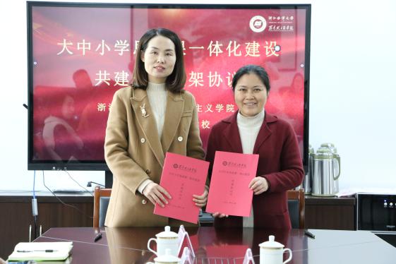 贝静红院长在签约仪式上介绍了学院现有教学资源,提出与中小学开展共建的工作思路,学院将充分利用大学的资源优势,发挥高校引领作用,助力思政课建设,为构建一体化育人格局做出贡献。岱山中学江爱国校长表示希望此次合作能借成人网