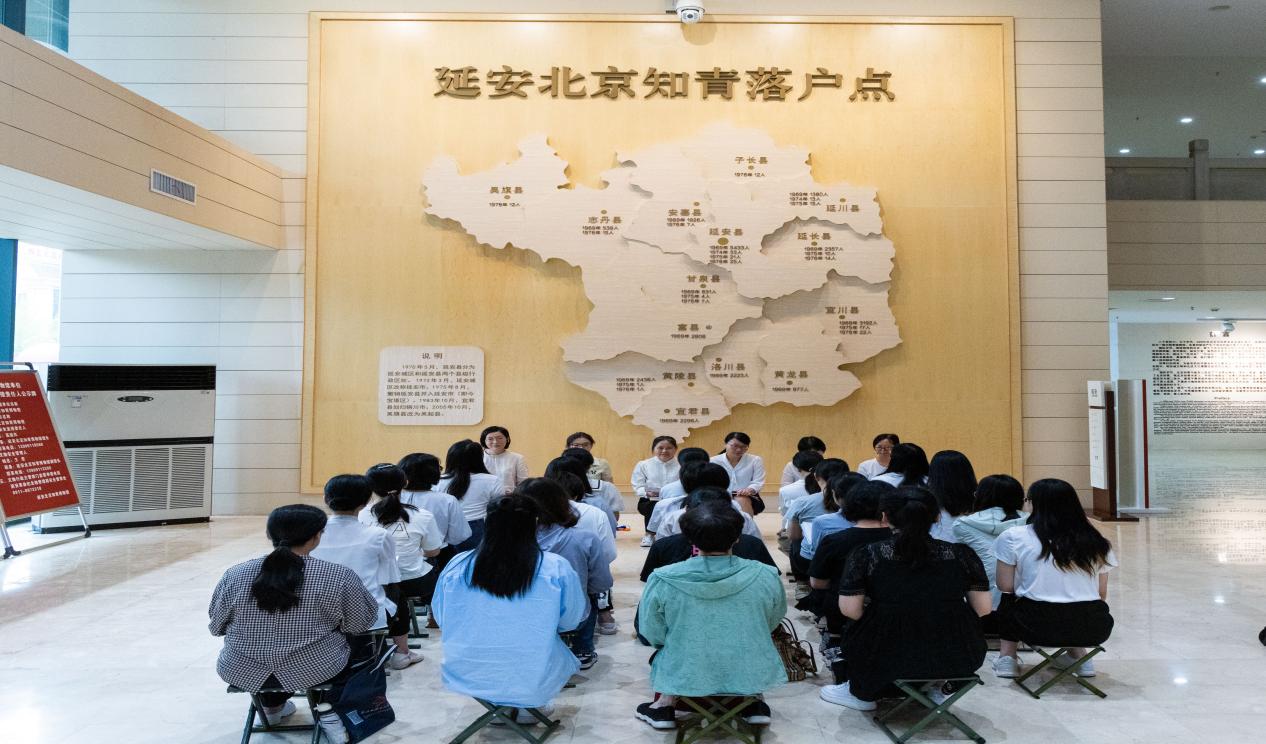 随后,在讲解老师的带领下,大家参观了延安北京知青博物馆,全面系统地了解了那段知青岁月。广大北京知青在延安这片红色热土上,积极参与了当地的春耕春种、秋收冬藏,在农村这片广阔的天地中锻炼了筋骨,磨练了意志,接受了劳动教育,为延安的生产发展、文化教育医疗等做出了重要贡献。