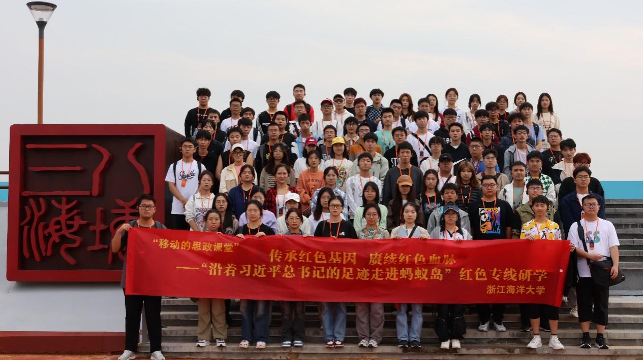 在马院教师的带领下,全体学生沿着习近平总书记的足迹走进蚂蚁岛,沉浸式感受蚂蚁岛“艰苦创业、敢啃骨头、勇争一流”的蚂蚁岛精神。