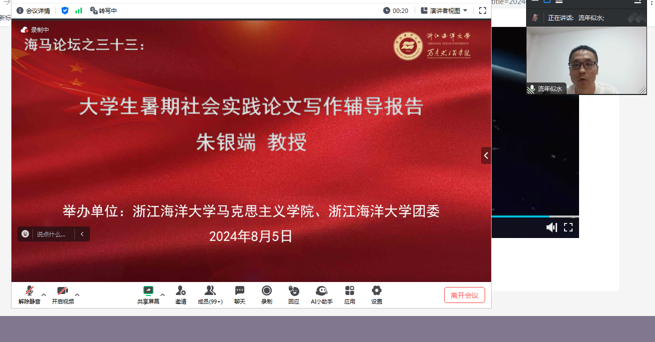 2024年8月5日晚,海马论坛第33期专题报告通过腾讯会议举办。华侨大学成人网