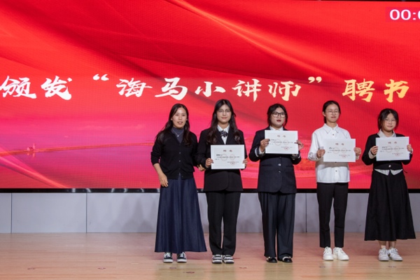 在比赛现场聘任部分优秀选手为“海马小讲师”,并为他们颁发聘书。