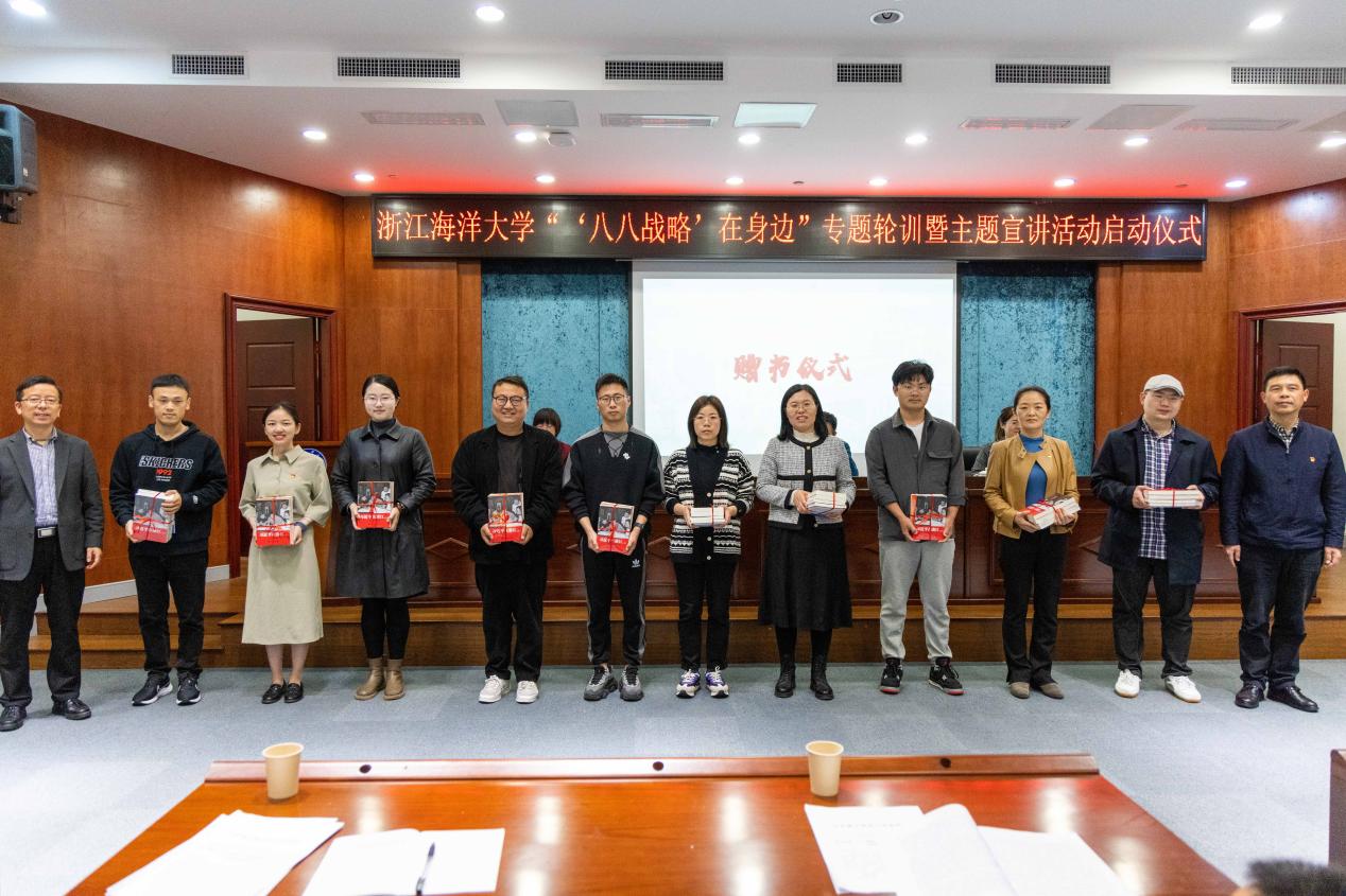 陈宏祖回顾了习近平总书记与浙江省及我校的渊源和故事,号召大家怀一颗感恩的心,高质量推进我校“‘八八战略’在身边”主题宣讲活动,把“八八战略”故事讲出彩。仪式上宣传部、马院介绍了相关工作方案,并向二级学院赠送相关学习书籍。