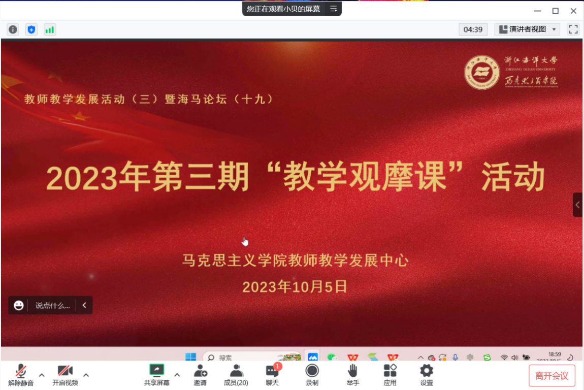 在线上举办了2023年第三期“教学观摩课”活动。本次活动由学院党总支书记、院长贝静红主持,学院教师教学发展中心全体成员及近三年入职的新教师参加。