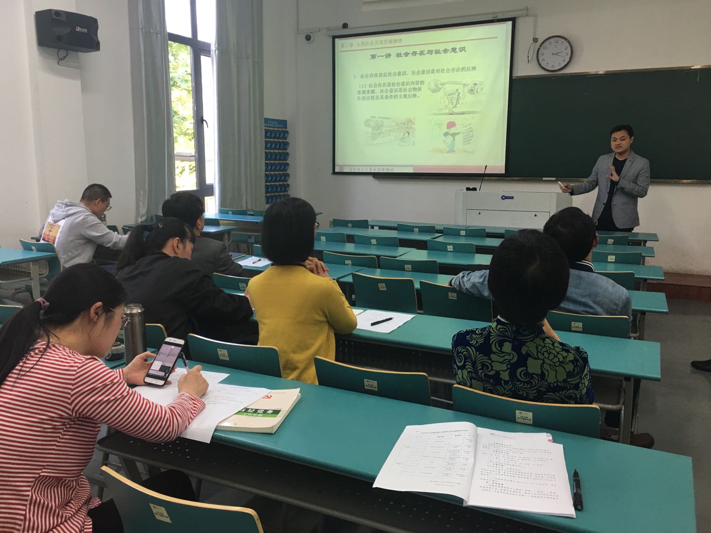 根据学院教学活动计划以及教研活动安排,学院组织选拔优秀教师参加省高校微课教学比赛以及青年教师教学竞赛,5月10日下午学院安排教师听评课活动。参加本次讲课的教室有马原教研室的张永辉老师以及思修教研室的葛传根老师,学院书记童航良、院长沈佳强以及四个教研室教师共十余人参与本次活动。在此次公开课中,两位老师都做了认真的准备,精心设计课堂教学,针对不同教学内容设采用不同的教学方式和方法。
