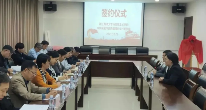 与横坎头村签订了教学实践基地(校地)共建协议,并与罗洁委员为教学实践基地揭牌。双方达成一致意见:将进一步加强党建等多方合作,实现资源共享,共同受益,将共建落到实处。之后,全体教师在当地老师的带领下,进入横坎头村党建馆、浙东区党委旧址等进行现场学习。