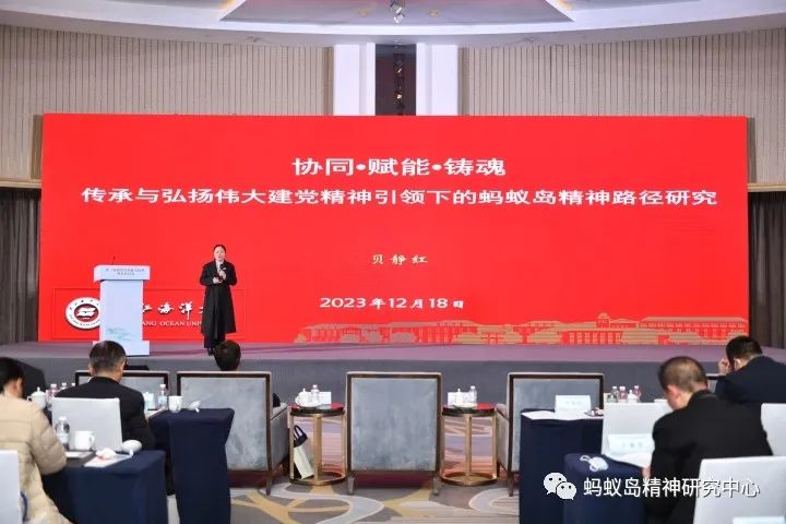 “‘艰苦创业、敢啃骨头、勇争一流’的蚂蚁岛精神蕴含着‘高水平建设现代海洋城市,以海岛现代化践行中国式现代化’需要的精神元素和精神资源。”中共浙江省委党校原副校长陈立旭认为,要以蚂蚁岛精神激励全市党员干部模范实践,使蚂蚁岛精神成为建设融入国内国际双循环的海上开放门户、高质量发展的国家海洋战略重地、山海共美的海上花园城市、共同富裕的海岛样板、独树一帜的海洋文化承载地、绿色低碳的海洋生态示范区的强大精神动力。