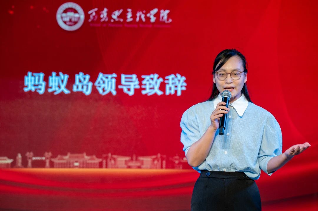院长贝静红在讲话中表示,南师马院师生来到蚂蚁岛红色文化基地开展实践调研,将为传承“蚂蚁岛精神”增光添彩。贝院长还回顾了改革开放以来蚂蚁岛乡村建设的发展历程,期待通过两校的合作,共同推动“蚂蚁岛精神”的传播。