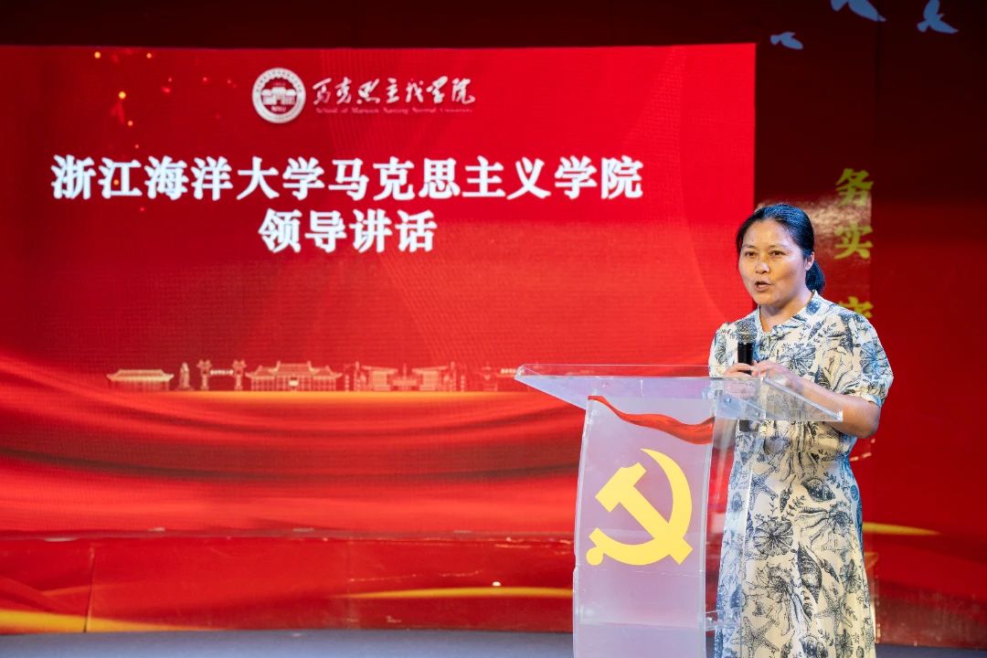 蚂蚁岛管理委员会党工委委员、副主任陆丹芳致辞欢迎南师马院实践团的到来,并希望实践团队能继承和发扬“蚂蚁岛精神”,助力新时代乡村振兴建设。