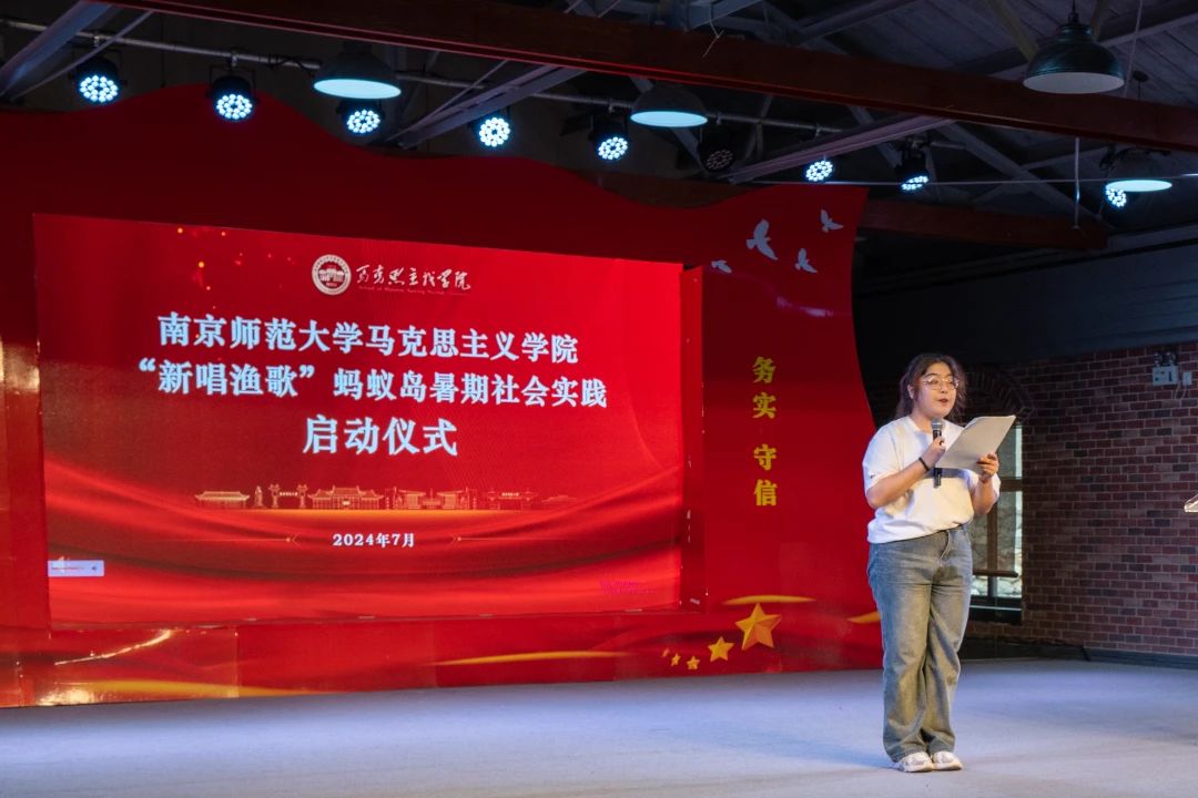 “新唱渔歌”蚂蚁岛暑期社会实践启动仪式在浙江省舟山市蚂蚁岛创业礼堂举行。蚂蚁岛管理委员会党工委委员、副主任陆丹芳,蚂蚁岛“三八”海塘建设者、“蚂蚁岛精神”宣讲队成员高月英,成人网